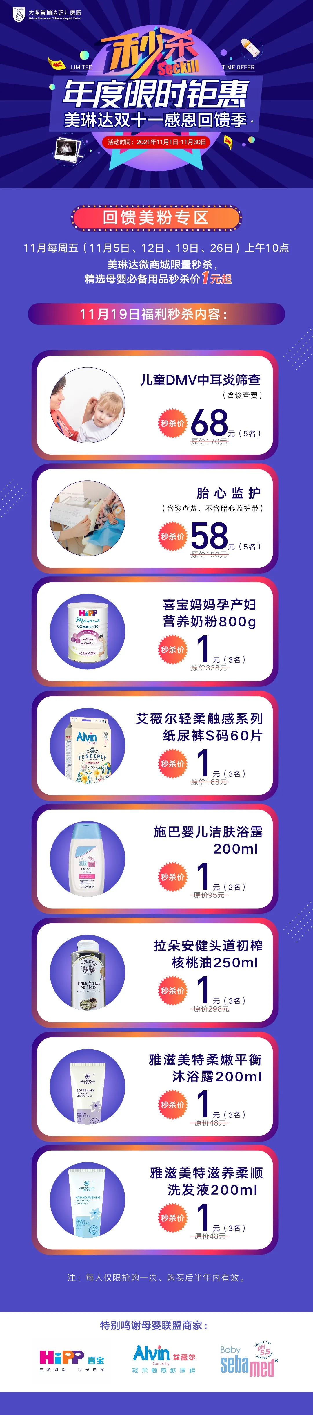 大连美琳达妇儿医院—让生命更美妙【官方网站】_超划算!美琳达双十一感恩回馈季,年度限时钜惠秒杀价1元起!_大连美琳达妇儿医院—让生命更美妙【官方网站】